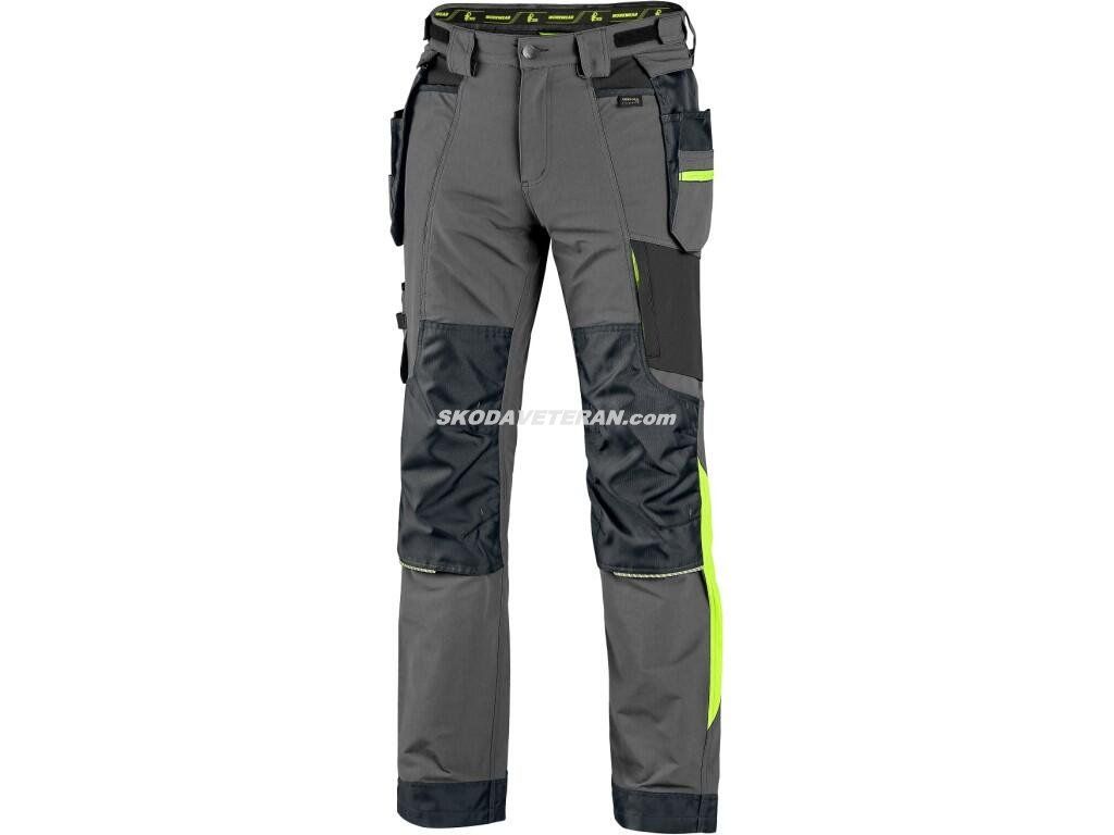 Pánské montérkové kalhoty s užším moderním střihem nohavic s kontrastními barevnými a reflexními doplňky. Konstrukce 4-way stretch umožňuje roztahování materiálu ve všech čtyřech směrech a tím i snadný a volný pohyb. Vysoké procento nylonu zaručuje schopnost rychlého schnutí. Vybavení kalhot: flexibilní pas s možností upravení velikosti a poutky na opasek, 2 přední kapsy, 2 odnímatelné kapsy na nářadí vyztuženy materiálem CORDURA®, zipová kapsa na stehně s odnímatelným pouzdrem na ID kartu, multifunkční boční kapsa, 2 zadní kapsy ve spodní části vyztuženy materiálem CORDURA®, zipová ventilace v zadní části stehen, kolena zesílena materiálem CORDURA® s možností vložení kolenních výztuh, spodní část nohavic vyztužena materiálem CORDURA®. Kalhoty jsou vybaveny EASY-PROLONG systémem, který umožňuje snadné prodloužení střihu na vyšší postavu uvolněním švu na nohavicích. Doporučené použití: strojírenství, stavebnictví, lehký průmysl, automobilový průmysl, logistika, skladování, spedice, autoservisy, údržba, montáže, zemědělství, zahrada, hobby a volný čas.
