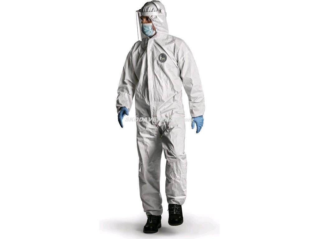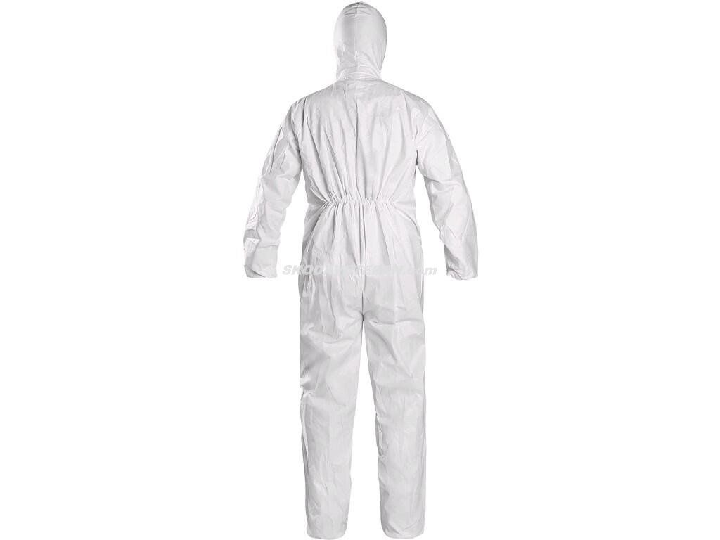 Jednorázový ochranný overal s kapucí. Ergonomické provedení slouží k ochraně uživatele. Elastické zakončení kolem zápěstí, kotníků a obličeje. Elastický pas. Zip s ochrannou klopou. Doporučené použití: malířské práce, zemědělství, čisté prostory, farmaceutický průmysl a zdravotnictví.Doplňkové parametry