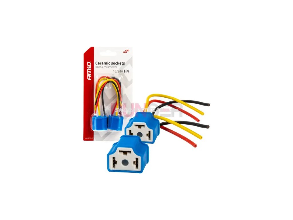 H4 SADA 2 ks Koncovka je vyrobena z keramického materiálu, který je odolný vůči vysokým teplotám. Má pevný izolační kryt. Montážní bloky s vodiči pro halogenové žárovky H4 (pro vozidla s napájením 12/24V). Určeno pro všechny světlomety a svítidla automobilů se žárovkami H4 umožňující montáž elektroinstalace nebo výměnu opotřebované koncovky. VÝHODY: Keramika poskytuje 100% odolnost proti vyhoření Izolace je vyrobena z pevného plastu odolného vůči extrémně vysokým teplotám
