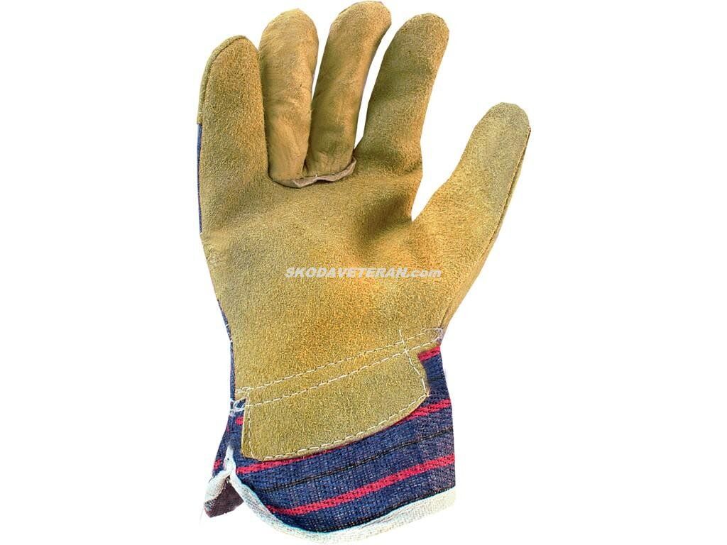 | Materiálové složení: | dlaň - hovězí štípenka, hřbet a manžeta - bavlněná tkanina |